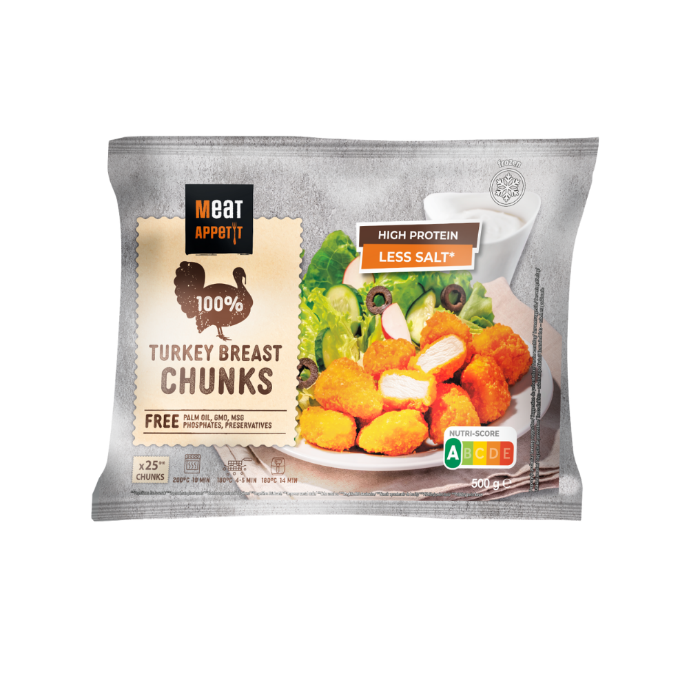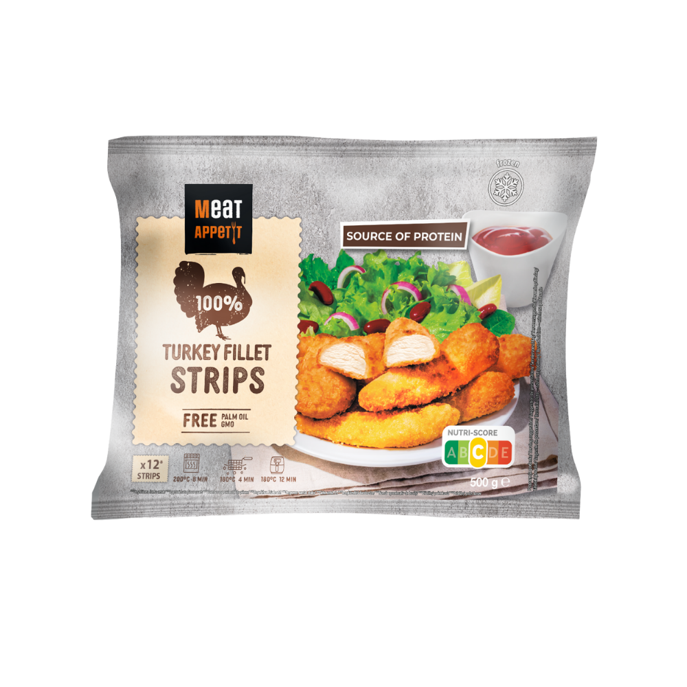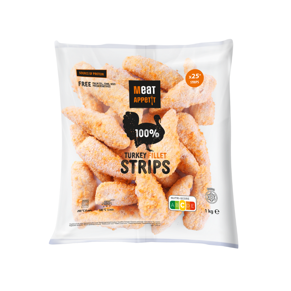 Meat Appetit to połączenie chrupkości panierki, soczystości i precyzyjnie dobranych przypraw. Wszystkie produkty wytwarzane są z najwyższej jakości surowca – fileta z indyka, z wykorzystaniem najnowszych technologii produkcji.